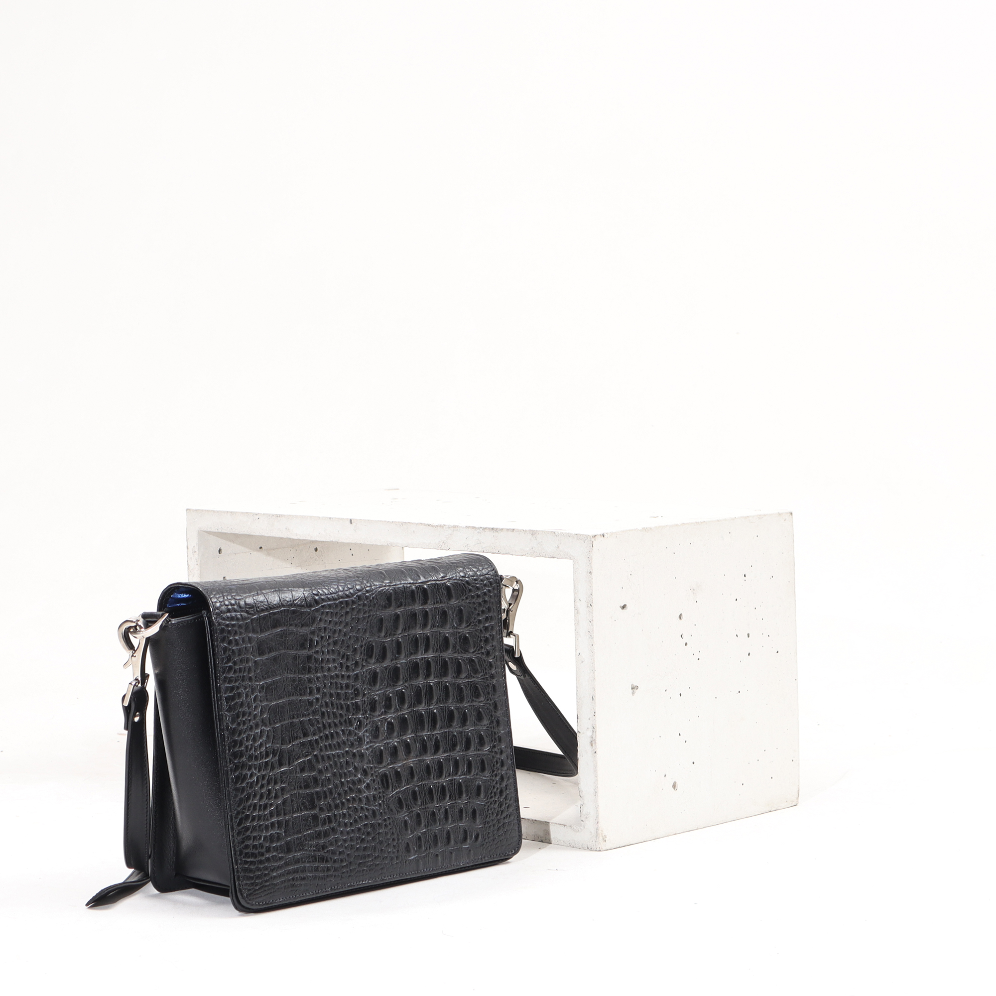 Color: black embossed croco pattern