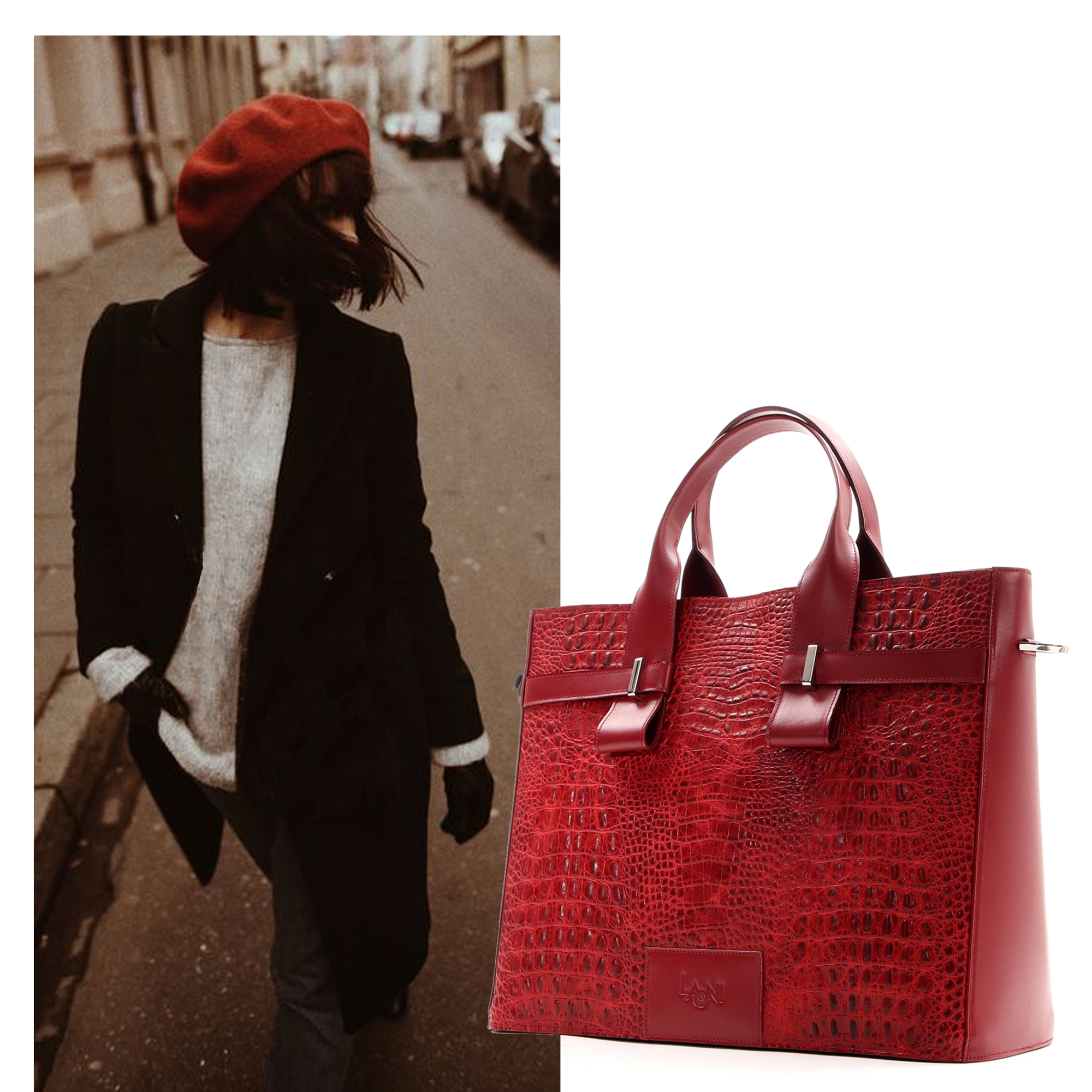 Material: genuine calf leather, embossed croco pattern